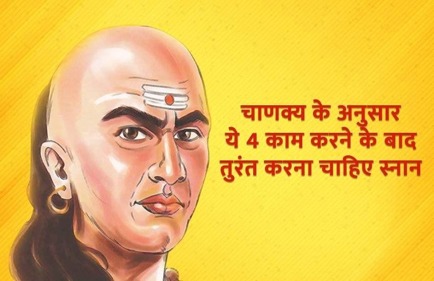 प्राचीन काल में लोग कुछ ऐसे काम करते थे जिससे उनका स्वास्थ्य हमेशा अच्छा रहता था। साथ ही वे लंबी आयु तक जीवित रहते थे। चाहे वो खान-पान हो या कुछ नियम जो दैनिक कार्यों के बाद किए जाते हैं। इनमें काफी बीमारियां तो ऐसी थी कि जो केवल स्नान करने से ठीक हो जाती थी। इसी संबंध में आचार्य चाणक्य प्राचीन काल की कुल पांच कार्यों के बारे में बताया है जिसे करने के बाद मनुष्य को तुरंत स्नान कर लेना चाहिए। आगे हम चाणक्य द्वारा बताई गई उन बातों को बता रहे हैं जिसे करने के बाद तुरंत स्नान करना चाहिए।
