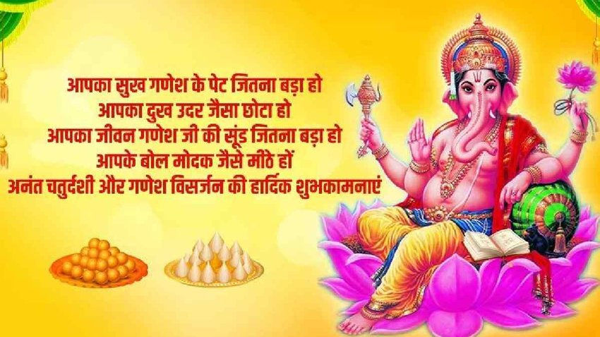 Anant chaturdashi 2023 Wishes Ganesh Visarjan: हर मास भाद्रपद मास के शुक्ल पक्ष की चतुर्दशी तिथि को अनंत चतुर्दशी का व्रत रखा जाता है। इस दिन भगवान विष्णु की विधिवत पूजा की जाती है। इसके अलावा आज के दिन 10 दिन चलने वाले गणेश उत्सव भी समाप्त हो जाता है। अनंत चतुर्दशी के मौके पर अनंत धागा बांधने का विशेष महत्व है। माना जाता है कि आज के दिन अनंत धागा बांधने से व्यक्ति को हर तरह की परेशानियों से निजात मिल जाती है। इसके साथ ही सुख-समृद्धि की प्राप्ति होती है। अनंत चतुर्दशी के मौके पर आप भी भगवान गणेश और विष्णु जी की पूजा करने के साथ इन मैसेज, कोट्स के जरिए शुभकामनाएं दे सकते हैं।