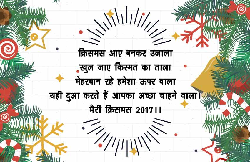 Merry Christmas 2017 Wishes: 25 दिसंबर को हर साल क्रिसमस डे के रुप में मनाया जाता है। इस साल भी ढेर सारी खुशियों और सेलिब्रेशन को लेकर क्रिसमस का त्योहार आ गया है। ईसाई समुदाय की मान्यता के अनुसार क्रिसमस से रौशनी का आरंभ होता है। इस दिन को यीशू मसीह के जन्मदिवस के रुप में मनाया जाता है। इस उत्सव पर अपने प्रियजनों को गिफ्ट्स देना, चर्च में आयोजन और सजावट करना शामिल होता है। क्रिसमस की पूर्व संध्या यानि 24 दिसंबर की शाम को ही लोगों में क्रिसमस का उल्लास अपने चरम पर पहुंच जाता है।