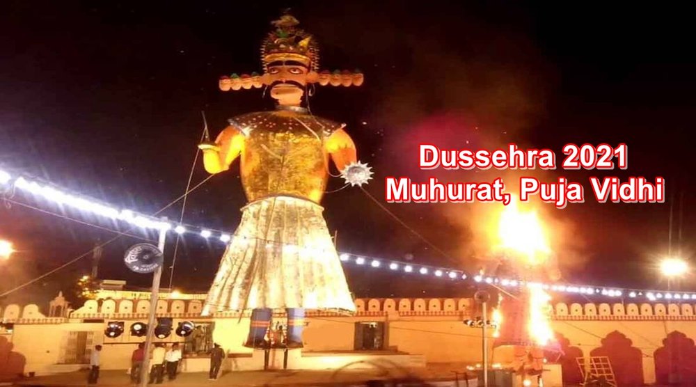 15 अक्टूबर 2021, शुक्रवार को विजय दशमी का सबसे शुभ मुहूर्त दोपहर 02 बजकर 02 मिनट से दोपहर 02 बजकर 48 मिनट तक है, यह दशहरा की पूजा का शुभ मुहूर्त है। रावण, कुंभकरण और मेघनाथ के पुतले का दहन शाम को सूर्यास्त के बाद किया जाता है। रावण दहन का शुभ समय शाम 7:26 मिनट से रात 9:22 मिनट तक उत्तम है.