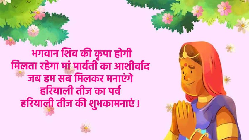 Hariyali Teej 2023 Greeting Message: हरियाली तीज में महिलाएं पति की लंबी आयु के लिए व्रत रखकर मां पार्वती और भगवान शिव की उपासना करती है। इसके साथ ही गणेश जी की भी पूजा करना का विधान है। माना जाता है कि अगर किसी के विवाह में अड़चन आ रही हैं या फिर मनचाहे वर की कामना है, तो कुंवारी कन्याएं भी इस व्रत को रख सकती हैं। माना जाता है कि इस दिन माता पार्वती और शिव जी का पुनर्मिलन हुआ था। हरियाली तीज के दिन पूजा करने के साथ-साथ सोशल मीडिया के माध्यम से अपनी दोस्तों, करीबियों और रिश्तेदारों को इन मैसेज, तस्वीरों के माध्यम से शुभकामनाएं दे सकते हैं। बता दें इस साल हरियाली तीज का पर्व 19 अगस्त 2023 को मनाया जा रहा है।