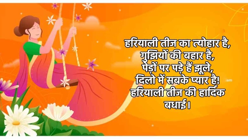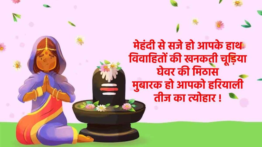 Hariyali Teej 2023 Greeting Message: हरियाली तीज में महिलाएं पति की लंबी आयु के लिए व्रत रखकर मां पार्वती और भगवान शिव की उपासना करती है। इसके साथ ही गणेश जी की भी पूजा करना का विधान है। माना जाता है कि अगर किसी के विवाह में अड़चन आ रही हैं या फिर मनचाहे वर की कामना है, तो कुंवारी कन्याएं भी इस व्रत को रख सकती हैं। माना जाता है कि इस दिन माता पार्वती और शिव जी का पुनर्मिलन हुआ था। हरियाली तीज के दिन पूजा करने के साथ-साथ सोशल मीडिया के माध्यम से अपनी दोस्तों, करीबियों और रिश्तेदारों को इन मैसेज, तस्वीरों के माध्यम से शुभकामनाएं दे सकते हैं। बता दें इस साल हरियाली तीज का पर्व 19 अगस्त 2023 को मनाया जा रहा है।