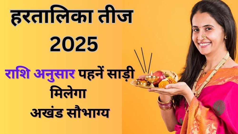 Hartalika Teej 2025 Rashi Anusar Saree Rang: हिंदू धर्म में हरतालिका तीज का पर्व सुहागिन महिलाओं के लिए विशेष महत्व रखता है। इस दिन सुहागिन महिलाएं भगवान शिव और माता पार्वती की मिट्टी से प्रतिमा बनाकर उनकी पूजा करती हैं। साथ ही, निर्जला व्रत रख माता पार्वती और भगवान शिव से अखंड सुहाग की प्रार्थना करती हैं। मान्यता है कि इस व्रत को रखने से अखंड सौभाग्य और दांपत्य सुख का आशीर्वाद मिलता है। कहा जाता है कि यह व्रत पति की तरक्की और वैवाहिक जीवन की खुशहाली के लिए बेहद लाभकारी माना जाता है। वहीं, ज्योतिष की मानें तो अगर व्रत रखने वाली महिलाएं इस दिन अपनी राशि के अनुसार साड़ी पहनती हैं तो इससे गृह कलह दूर होती है और जीवन में सकारात्मकता आती है। तो चलिए जानते हैं हरतालिका तीज पर सुहागिन स्त्रियां राशि अनुसार किस रंग की साड़ी पहनें।