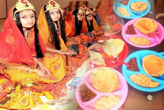 देवी दुर्गा के भक्तों ने माता को कहा कि हे देवी, हम सिर्फ नौ दिन आपकी उपासना कर तृप्त नहीं हो पाते हैं। हम चाहते हैं कि हम आपके पैर धोएं, आपको तिलक लगाएं और आपको भोग लगाएं। इस पर देवी दुर्गा ने कहा कि आप सब इस विधि से 11 साल से छोटी कन्याओं का पूजन करें। उन कन्याओं के रूप में मेरे नौ स्वरूप ही आपके घर आएंगें।