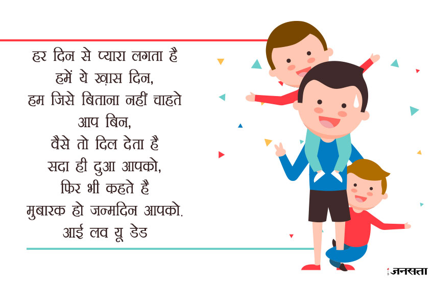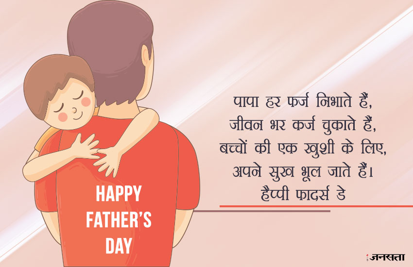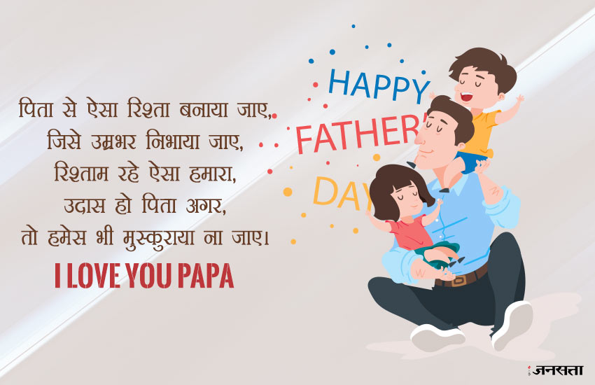 Happy Fathers Day 2018 Wishes Images, Quotes, Messages, SMS in Hindi, हैप्पी फादर्स डे २०१८ विशेस इमेजेज, कोट्स: रविवार (17 जून, 2018) का दिन भारत समेत कई देशों में फादर्स डे के रूप में मनाया जा रहा है। इस दिन बच्चे अपने पिता को सम्मान और प्यार देने के रूप में सेलिब्रेट करते हैं। इस साल 109वां फादर्स डे सेलिब्रेट किया जा रहा है। सबसे पहले साल 5 जूलाई 1908 को अमेरिका में पश्चिमी वर्जीनिया के मोनोंगाह में मनाया गया था। दरअसल, पश्चिमी वर्जीनिया के मोनोंगाह में साल 1907 को एक फैक्ट्री में आग लगने के कारण 362 कर्मचारियों की मौत हो गई थी। उन्हीं की याद में अगले साल 5 जुलाई को फादर्स डे के रूप में मनाया गया। हालांकि साल 1966 में पहली बार राष्ट्रपति लिंडन जॉनसन ने इसे जून के तीसरे रविवार को मनाए जाने का फैसला किया। एक इंसान के जीवन में उसके पिता का बहुत बड़ा योगदान होता है। यूं तो एक पिता हर दिन अपने बच्चों से सम्मान के अधिकारी हैं, लेकिन फादर्स डे एक ऐसा विशेष दिन होता है, जिस दिन पिता के प्रति प्यार और सम्मान कुछ ज्यादा ही उमड़ता है। पिता के प्यार को हम चंद शब्दों में तो बयां नहीं कर सकते, लेकिन कुछ कविताएं ऐसी जरूर हैं, जिनके जरिए आप अपने दिल की भावनाओं को अपने पापा तक पहुंचा सकते हैं। आप भी इन खास एसएमएस, मैसेज और ग्रीटिंग्स के जरिए अपने पिता को फादर्स डे की शुभकामनाएं और बधाई संदेश भेज सकते हैं।