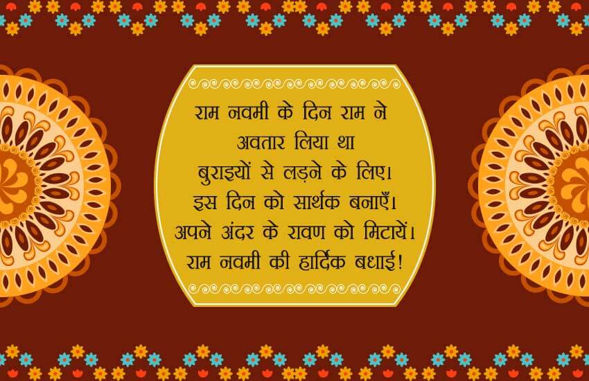 देशभर में इस त्योहार को बहुत महत्व है। रामनवमी के इस पावन पर्व पर हम लाएं हैं आपके लिए खास तौर से ऐसे संदेश जिन्हें भेजकर आप अपने दोस्तों और रिश्तेदारों को शुभकामनाएं दे सकते हैं।