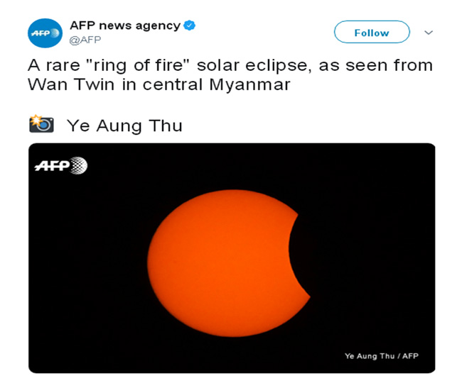 गुरुवार का सूर्य ग्रहण सऊदी अरब, कतर, संयुक्त अरब अमीरात, ओमान, भारत, श्रीलंका, मलेशिया, इंडोनेशिया, सिंगापुर, उत्तरी मारियाना द्वीप और गुआम में दिखाई देगा।