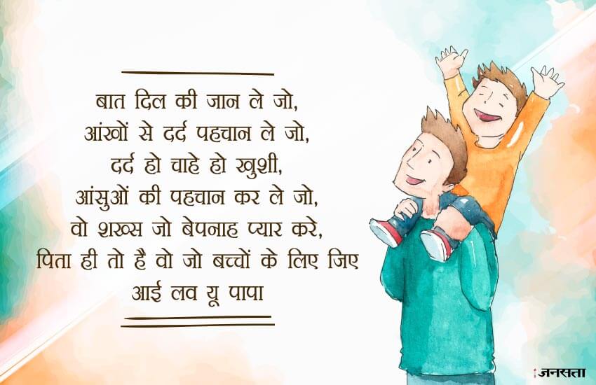 फादर्स डे के दिन बच्चे भी पिता के उठते ही उन्हें सरप्राइज गिफ्ट देते हैं, पार्टी प्लान करते हैं, ज्यादा से ज्याद समय उनके साथ बिताने की कोशिश करते हैं, लेकिन जो लोग अपने पिता से दूर होते हैं वो फादर्स डे सेलिब्रेट करने के लिए सोशल मीडिया के जरिए पिता को इस दिन की बधाई देते हैं और अपना प्यार जाहिर करते हैं। इस दिन सोशल मीडिया पर फादर्स डे के बधाई संदेशों की भरमार नजर आती है। सोशल मीडिया इस दिन को बड़े जोश के साथ सेलिब्रेट करता है। आप भी नीचे दिए गए मैसेज, स्टेटस को व्हॉट्सअप और फेसबुक के जरिए पिता को भेजकर इस दिन को खास बना सकते हैं।