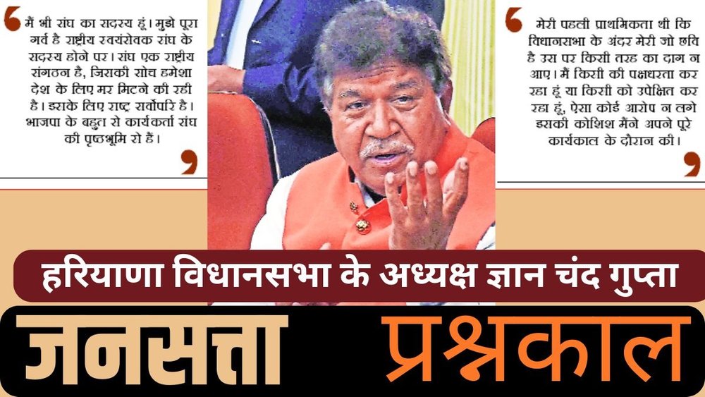 हरियाणा विधानसभा के अध्यक्ष ज्ञान चंद गुप्ता का कहना है कि कोई व्यक्ति किसी राजनीतिक दल का सक्रिय सदस्य होते हुए भी सदन की निष्पक्ष अगुआई कर सकता है। यह संवैधानिक व्यवस्था है, जिसमें सिर्फ संविधान को सुनें। सूबे में सरकार पर नौकरशाही हावी होने के इल्जाम को खारिज करते हुए उन्होंने कहा कि अफसरों का रुख सरकार के साथ बदल जाता है। सरकार में संघ की दखलंदाजी के आरोप पर उन्होंने कहा कि यह संगठन सिर्फ राष्ट्रहित की बात सोचता है। नायब सिंह सैनी के चयन को सही बताते हुए उन्होंने दावा किया कि भाजपा हरियाणा में तीसरी बार सरकार बनाएगी। चंडीगढ़ में ज्ञान चंद गुप्ता के साथ कार्यकारी संपादक मुकेश भारद्वाज की विस्तृत बातचीत के चुनिंदा अंश।