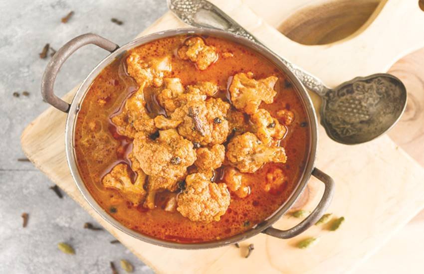 अब निथरी हुई दही को ठीक से फेंट लें और सब्जी में मिला दें। जब तक सब्जी में खदबदाहट न होने लगे चलाते रहें, नहीं तो दही फट कर दानेदार और कड़ा हो जाएगा। अब इसमें आधा चम्मच लाल मिर्च पाउडर और नमक डालें। नमक डालते समय सावधानी बरतें, क्योंकि पहले ही दो बार नमक का उपयोग कर चुके हैं। फिर एक से डेढ़ कप यानी इतनी मात्रा में पानी डालें कि गोभी का आधा हिस्सा उसमें डूब जाए। अगर आप इसमें रतनजोत या केसर डालना चाहते हैं, तो उसे इसी समय डालें। रतनजोत को तेल में भिगो कर रखना पड़ता है और केसर को ठंडे दूध में। अगर ये दोनों चीजें न भी डालें, तो स्वाद में बहुत फर्क नहीं पड़ेगा। कड़ाही पर ढक्कन लगा दें। धीमी आंच पर पकने दें। जब गोभी पूरी तरह पक जाए तो आंच बंद कर दें।