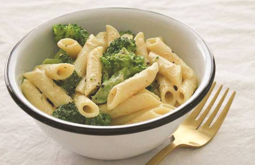 अब एक पैन में एक कप पानी गरम करें। उसमें एक चम्मच देसी घी डालें और नमक डालें। जब पानी उबलने लगे तो डेढ़ कप पास्ता डाल दें। उसे चलाते रहें, ताकि वे आपस में चिपकें नहीं। जब पानी उबलने लगे तो उसमें एक से डेढ़ कप दूध डालें और पास्ता को तेज आंच पर पकने दें। बीच-बीच में चलाते रहें। जब पानी सूखने लगे, तो उसमें एक से दो चम्मच पास्ता सॉस डालें और ठीक से मिला लें। इसी समय कुछ हरी सब्जियां भी डाल दें, जैसे ब्रोकली, बीन्स, पालक आदि। सीरी चीजों को ठीक से मिला लें। अब आंच को बिक्ुल मद्धिम कर दें और पैन पर ढक्कन लगा कर पांच मिनट के लिए पकने दें। फिर ढक्कन खोल कर उसमें आधा चम्मच पास्ता मसाला डालें और ठीक से मिला लें। आंच बंद कर दें और पैन को ढंक दें। पांच मिनट बाद पास्ता परोसने लायक हो जाएगा।