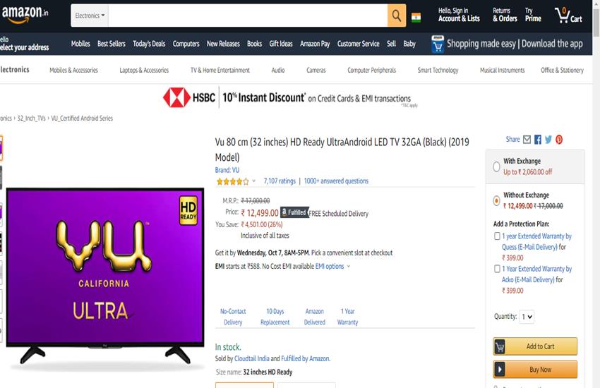 ऐसे पाएं 10% एक्सट्रा डिस्काउंटभी: 32 इंच वाले इस टीवी मॉडल्स पर छूट तो है लेकिन साथ ही ग्राहक यदि खरीदी करने पर बिल का भुगतान अगर HSBC क्रेडिट कार्ड या ईएमआई ट्रांजैक्शन के जरिए करते हैं तो 10% का इंस्टेंट डिस्काउंट भी मिलेगा।