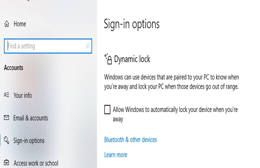 5) साइन-इन करने के बाद सेटिंग्स में डायनामिक लॉक सेक्शन सर्च करें। इसके बाद ‘Allow Windows…’ के आगे बॉक्स दिखाई दे रहा होगा, इसपर क्लिक करें।
