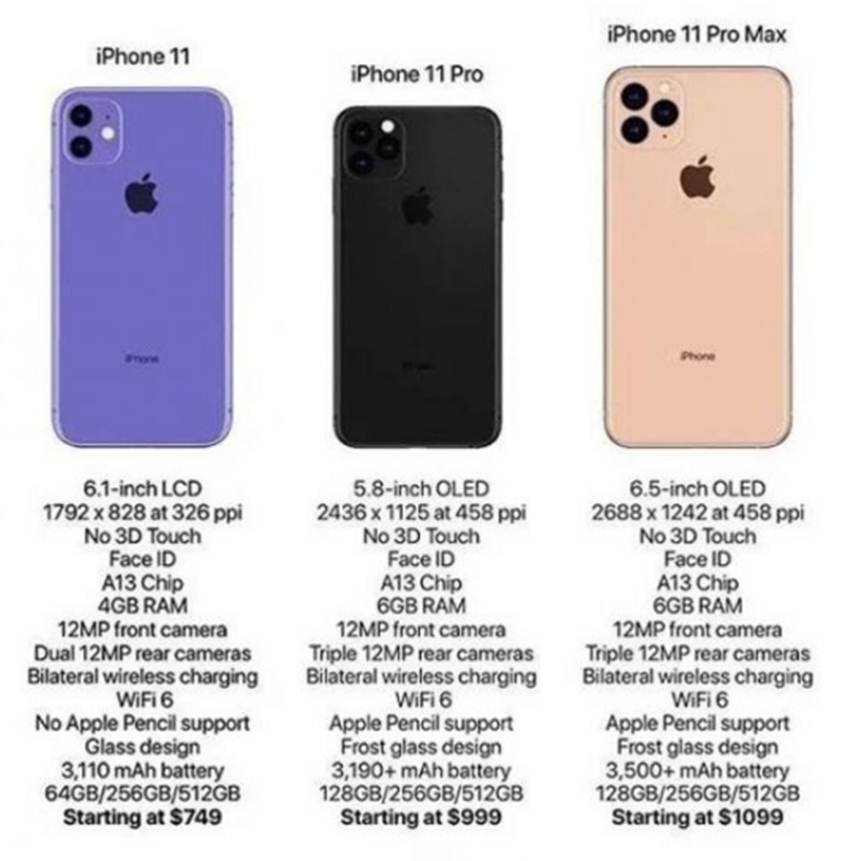 ये iPhones नए मॉडल रिवर्स वायरलेस चार्जिंग सपोर्ट के साथ लॉन्च होंगे। ये आईफोन्स 2019 मॉडल iOS 13.1 पर काम करेंगे और इनमें ए13 चिप लगी होगी। iPhone11, iPhone11 प्रो और iPhone11 प्रो मैक्स के साथ ऐप्पल नई ऐप्पल वॉच Apple Watch Series 5 भी लॉन्च कर सकता है। हालांकि, इस बारे में फिलहाल आधिकारिक पुष्टि नहीं हो सकी है।