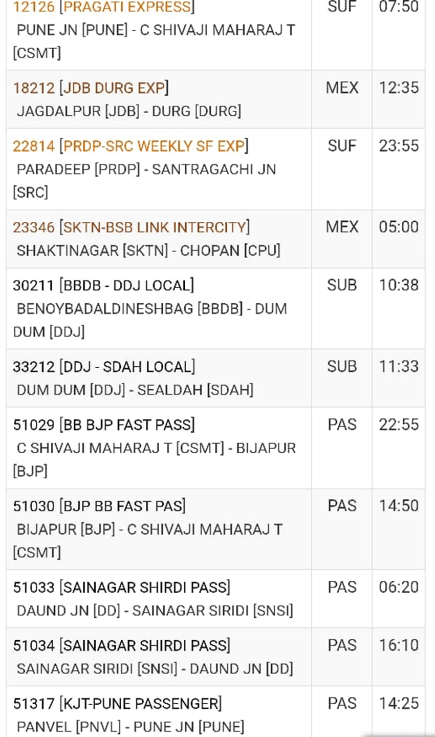 इसके अलावा अगर जिस स्टेशन से ट्रेन गुजरने वाली है वहां आपका स्टेशन नहीं पड़ता है तो भी आपके लिए थोड़ी मुश्किल होगी। ऐसे में हम आपको पहले ही बता रहे हैं कि कौन सी ट्रेन लेट हुई है और कितनी ट्रेनों को रद्द किया गया है। हालांकि इस खबर में सभी ट्रेनों की लिस्ट देना संभव नहीं था ऐसे में आप ट्रेन से जुड़ी ज्यादा जानकारी के लिए आप रेलवे की आधिकारिक वेबसाइट भी चेक कर सकते हैं।