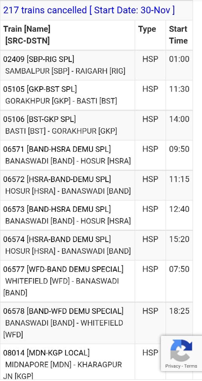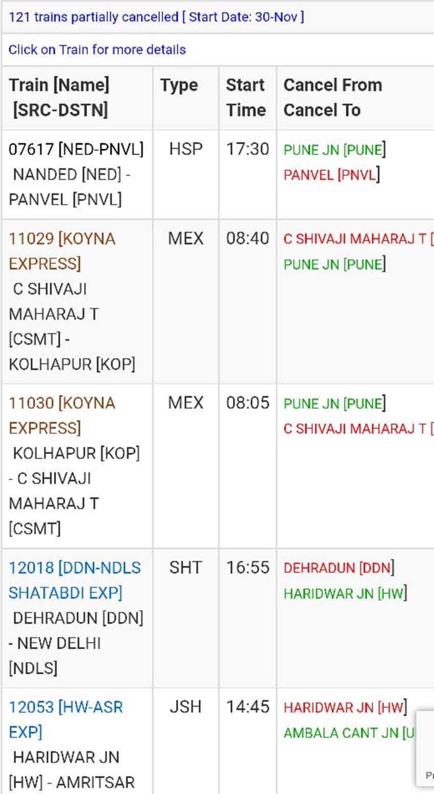 हमने ऊपर आपको कैंसल और आंशिक तौर पर रद्द रेलगाड़ियों के बारे में बताया, जबकि नीचे हम स्क्रीनशॉट में ऐसी ही कुछ और ट्रेनों की जानकारी दे रहे हैं। अगर इनमें आपकी ट्रेन न मिले, तब आप रेलवे की आधिकारिक साइट या फिर मोबाइल ऐप को चेक कर लें।