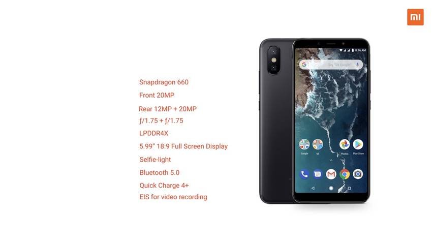 Mi A2 हैंडसेट कंपनी के Mi 6X का ग्लोबल वेरिएंट है। mi 6X को इसी साल चीन में लॉन्च किया गया था और इसमें Mi A2 वाले स्पेसिफिकेशन्स ही हैं। पहले ही खुलासा हो चुका है कि डिवाइस को एक्सक्लूसिव तौर पर ऐमज़ॉन इंडिया पर उपलब्ध कराया जाएगा। हालांकि, अभी बिक्री की तारीख की जानकारी नहीं मिली है।