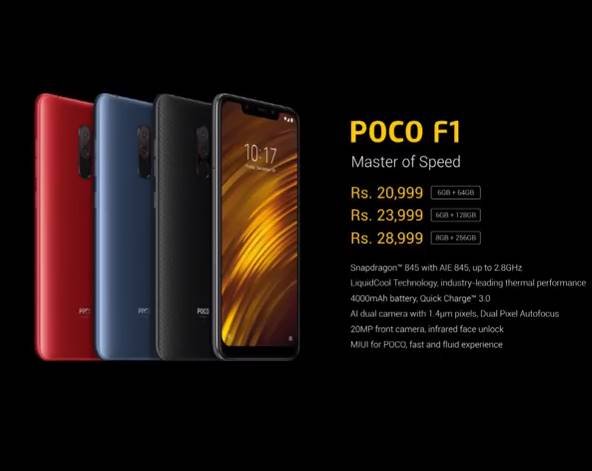 Poco F1 की कीमत की बात करें तो 8GB रैम और 256GB इंटरनल मैमोरी के साथ इसकी कीमत 28,999 रुपए रखी गई है।