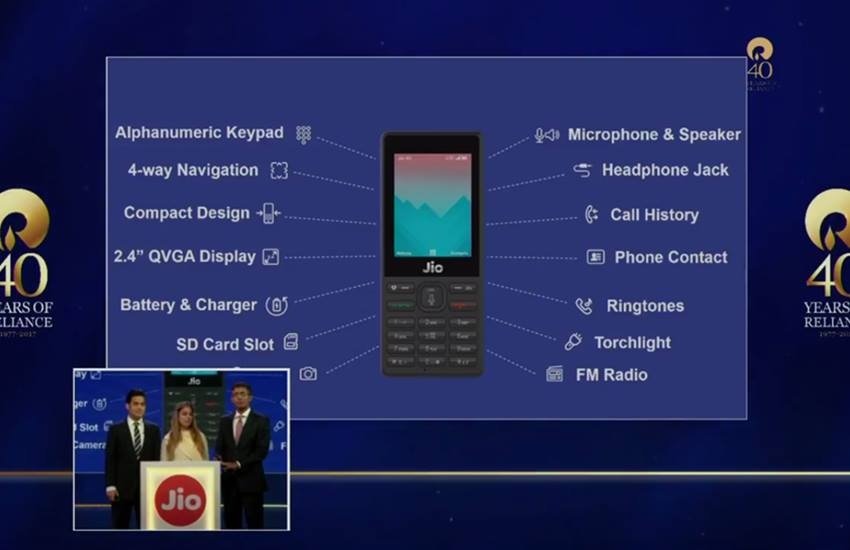 कीमत: जियो फोन की कीमत को शून्य रुपये रखा गया है। इसके लिए सिर्फ एक शर्त है कि फोन लेने वाले को 1,500 रुपये की सिक्योरिटी मनी देनी होगी, जिसे 3 साल बाद यूजर को वापस कर दिया जाएगा। फीचर्स की बात करें तो जियो के फीचर फोन में 2.4 इंच की क्यूवीजीए डिस्प्ले दी गई है।