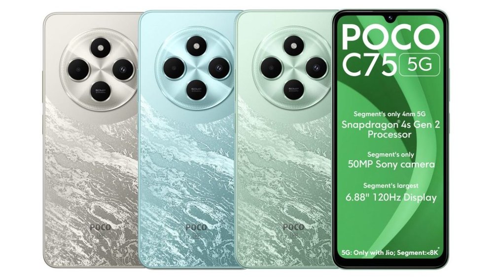 POCO C75 5G Launched: पोको ने आखिरकार भारत में अपना लेटेस्ट बजट 5G स्मार्टफोन भारत में लॉन्च कर दिया है। Poco C75 5G कंपनी के इस लेटेस्ट फोन में 6.88 इंच एचडी+ स्क्रीन, क्वालकॉम स्नैपड्रैगन 4s Gen 2 प्रोसेसर, 4 जीबी तक वर्चुअल रैम सपोर्ट और 50MP कैमरा जैसे नए फीचर्स दिए गए हैं। पोको सी75 5जी को पावर देने के लिए 5160mAh की बैटरी दी गई है। जानें नए पोको सी75 5जी की कीमत व फीचर्स के बारे में…