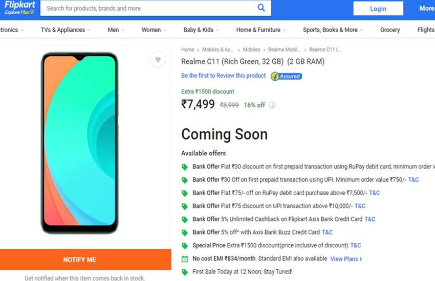 Realme C11 Price in India Flipkart