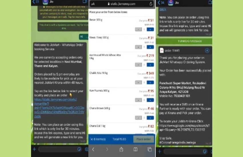 आप लोगों की जानकारी के लिए बता दें कि जियो मार्ट से ग्रोसरी ऑर्डर करने की यह सर्विस अभी केवल ठाणे, नवी मुंबई और कल्याण क्षेत्र के लिए ही उपलब्ध है। फिलहाल ज्यादा समान तो उपलब्ध नहीं है लेकिन आटा, सूजी, बेसन आदि समान आपको फिलहाल मिल जाएगा।