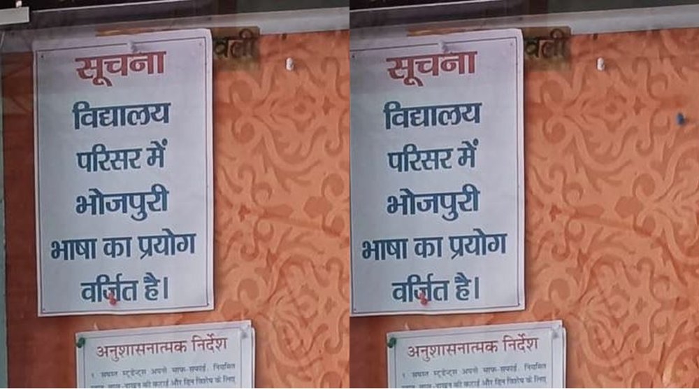 बिहार के पटना जिले से एक फोटो सोशल मीडिया पर वायरल हो रहा है। इस फोटो में दिख रहा है कि एक बोर्ड में लिखा गया है कि विद्यालय परिसर में भोजपुरी भाषा का प्रयोग वर्जित है। इस तस्वीर को लेकर सोशल मीडिया यूजर्स अपना गुस्सा जाहिर कर रहे हैं। इसको लेकर लोगों का कहना है कि इस तरह का बोर्ड लगाना भाषा का अपमान है।
