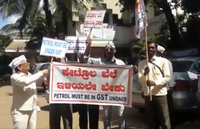 #BIGNEWS: AAP leader slaps party worker as he mistakenly shouted “increase fuel price” during #BharatBandh protest in #Belagavi.#PetrolDieselPriceHike pic.twitter.com/8RT9o6YQa1