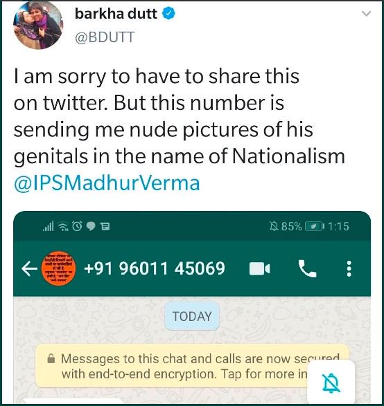 14 फरवरी को पुलवामा अटैक के बाद से ही सोशल मीडिया पर पत्रकार बरखा दत्त कई लोगों के निशाने पर हैं। बरखा दत्त का कहना है कि ट्विटर से लेकर व्हाट्सएप तक पर उन्हें जान से मारने और रेप करने की धमकी के साथ अश्लील संदेश भेजे जा रहे हैं। उन्होंने 18 फरवरी को एक ट्वीट किया था। उस ट्वीट में एक व्हाट्सऐप चैट का स्क्रीनशॉट था। उस स्क्रीनशॉट में पुरुष लिंग की तस्वीर थी। बरखा ने ये स्क्रीनशॉट ट्वीट करते हुए लिखा- मुझे अफसोस हो रहा है ये शेयर करते हुए, लेकिन क्या करूं। ये शख्स मुझे अपने लिंग की तस्वीर भेज रहा है। बरखा दत्त ने अपने अन्य ट्वीट्स में ये लिखा कि उनका नंबर सोशल मीडिया में शेयर किया जा रहा है। उस नंबर पर मैसेज कर कुछ लोग भद्दी गालियां औऱ जान से मारने की धमकी दे रहे हैं। बरखा दत्त ने उनके साथ इस तरह की हरकत करने वालों के मोबाइल नंबर भी अपने ट्विटर अकाउंट से शेयर किये हैं। एक ट्वीट के जरिए बरखा ने यह भी बताया कि ट्विटर ने ऐसा करने के लिए उनके खिलाफ एक्शन की बात भी कही है।