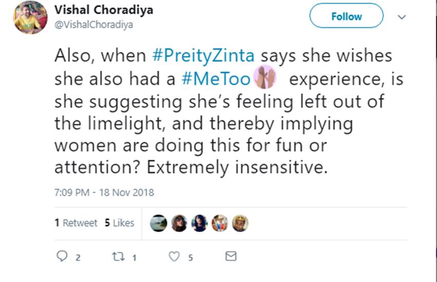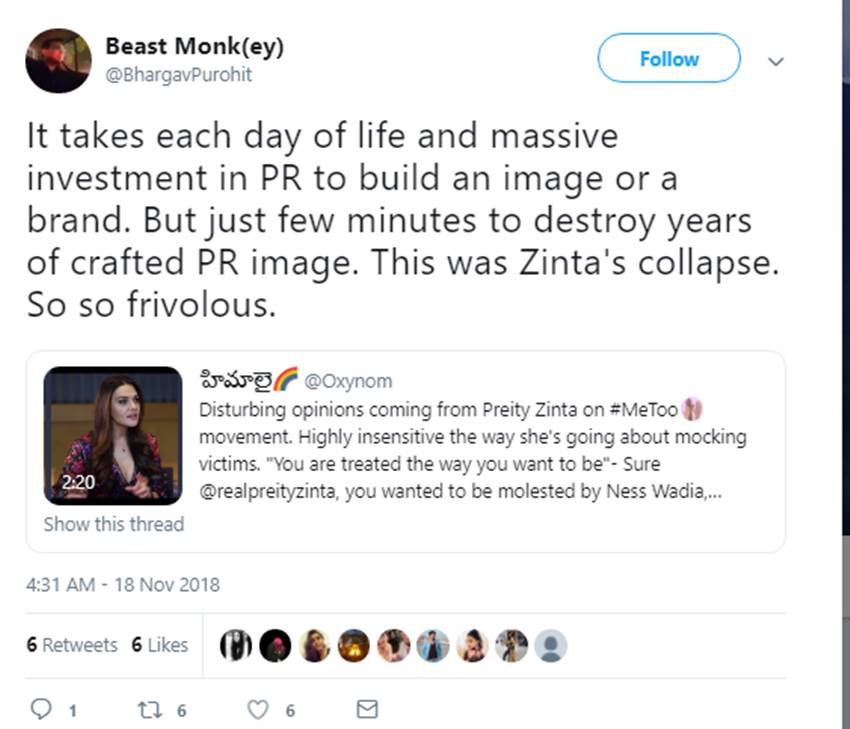Absolutely terrible & insensitive take on #MeToo from @realpreityzinta