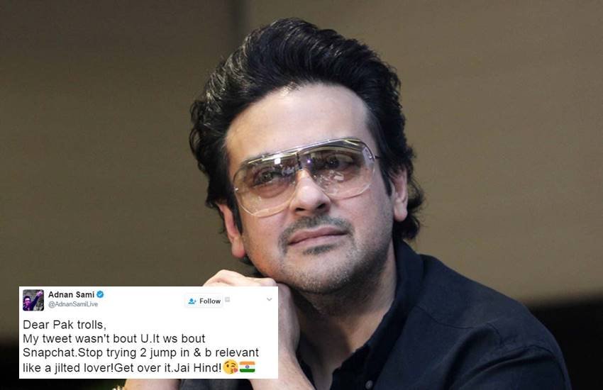 स्नैपचैट के खिलाफ बोलते हुए बॉलीवुड के मशहूर कलाकार अदनान समी के एक ट्वीट ने उन्हें पाकिस्तानी ट्रोलर्स के निशाने पर ला दिया था। पाकिस्तान में पिछले दो दिनों से ट्विटर पर अदनान ट्रोल हो रहे थे। पाकिस्तानियों द्वारा ट्रोल होता देख अदनान ने ऐसा ट्वीट किया जिससे ट्रोलर्स को उनकी ही जुबान में करारा जवाब मिल गया। आपको बता दें कि स्नैपचैट के सीईओ इवान स्पीगल के कथित तौर पर भारत को गरीब देश कहे जाने और अपनी ऐप को रईसों के लिए सूटेबल बताए जाने के बाद कई भारतीय नागरिकों ने इस एप्लिकेशन को अनइन्सटॉल कर दिया।जब भारतीय गायक अदनान सामी ने भी स्नैपचैट को अनइन्सटॉल करने की कोशिश की तो यह दाव उन पर उल्टा पड़ गया। असल में भारत के प्रति देशप्रेम दिखाने पर अदनान सामी को पाकिस्तानी सोशल मीडिया यूजर्स के गुस्से का सामना करना पड़ा। अदनान ने अपने ट्वीट में लिखा कि सब लोग स्नैपचैट को अनइंस्टॉल कर दो।
