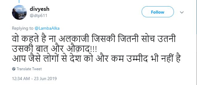 — Alka Lamba (@LambaAlka) June 22, 2019
