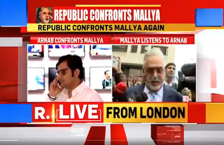 अरनब गोस्वामी ने फोन किया तो रिपब्लिक के रिपोर्टर ने स्पीकर ऑन कर विजय माल्या से बात करवानी चाही। हालांकि विजय माल्या ने अरनब के फोन कॉल को इग्नोर किया। इग्नोर होता देख अरनब थोड़े उग्र हो गए और कहने लगे कि आपने दो साल पहले ट्वीट किया था कि अरनब गोस्वामी को जेल में होना चाहिए। अरनब ने कहा कि आज हिंदुस्तान की जनता आपको जेल में देखना चाहती है। आपको कैदी के कपड़ों में देखना चाहता है भारत। आपकी असली जगह आर्थर रोड जेल में है। इतना कहने के बाद भी विजय माल्या ने अरनब को कोई जवाब नहीं दिया तो वो कहने लगे कि अगर आप कायर नहीं हैं तो मेरे सवालों का जवाब दिजिए।