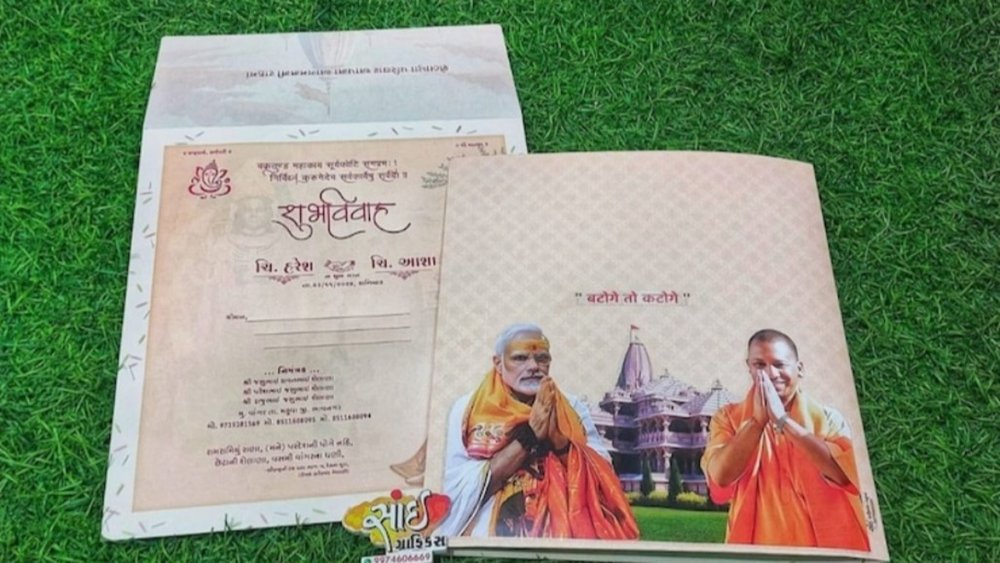 Bantoge toh katoge Wedding Card: उत्तर प्रदेश के सीएम योगी आदित्यनाथ ने चुनावी सभा के दौरान ‘बंटोगे तो कटोगे…’ का नारा दिया था। हरियाणा चुनाव के दौरान दिया गया उनका ये नारा अब महाराष्ट्र और झारखंड विधानसभा के भी चुनावी सभाओं में गूंज रहा है। चुनावी सभाओं तक तो ये नारा ठीक था लेकिन अब बीजेपी कार्यकर्ता इसे शादी के कार्ड में भी छपवा रहे हैं।