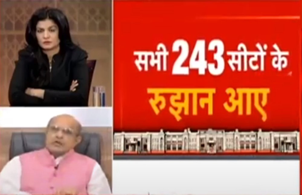 इन चुनावी रुझानों का लाइव टेलीकास्ट तमाम न्यूज चैनलों पर हो रहा है। हिंदी न्यूज चैनल आज तक पर भी मतगणना पर लाइव शो का आयोजन हो रहा है। इस लाइव शो में एक वक्त ऐसा आया जब शो की एंकर अंजना ओम कश्यप राजद के प्रवक्ता नवल किशोर यादव पर भड़कते हुए कहने लगीं कि तो आपके नाम की चालीसा पढ़ने लग जाएं क्या?