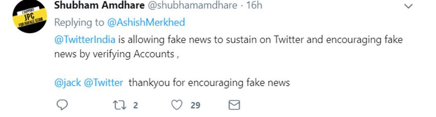 जानना चाहिए भाजपा महाराष्ट्र आईटी सेल के प्रमुख के इस ट्वीट के बाद सोशल मीडिया यूजर्स ने उनकी खूब क्लास लगाई। एक ट्विटर यूजर्स ने ट्वीट डिलीट किए जाने पर भी उनकी क्लास लगा दी। एमी नाम के यूजर्स ने ट्वीट कर लिखा, ‘आशीष कृपा करके आप बताएंगे कि ट्वीट क्यों डिलीट किया गया। अगर आपने यह ट्वीट डिलीट किया है। क्या मैं आपसे देर रात तक माफी मांगने की उम्मीद कर सकता हूं? सच की शक्ति झूठ की टीम से ज्यादा होती हैं आशिष! अब समझे?’