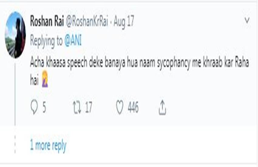 वहीं एक अन्य यूजर ने कहा ‘भाषण देकर अच्छा खासा नाम बनाया और अब चापलूसी में खराब कर रहे हैं।’ एक यूजर कहते हैं ‘नरेंद्र मोदी जी आपके सांसद भारत के आंतरिक मामले पर यूएन में चर्चा से खुश हैं।’ वहीं एक अन्य यूजर ने कहा ‘मीडिया द्वारा बनाए गए हीरो फुस हो गए हैं।’ एक यूजर कहते हैं ‘कुछ ज्यादा ही तारीफ हो गई इनकी बीजेपी वालों से..चने के झाड़ पर चढ़ा दिया था।’
