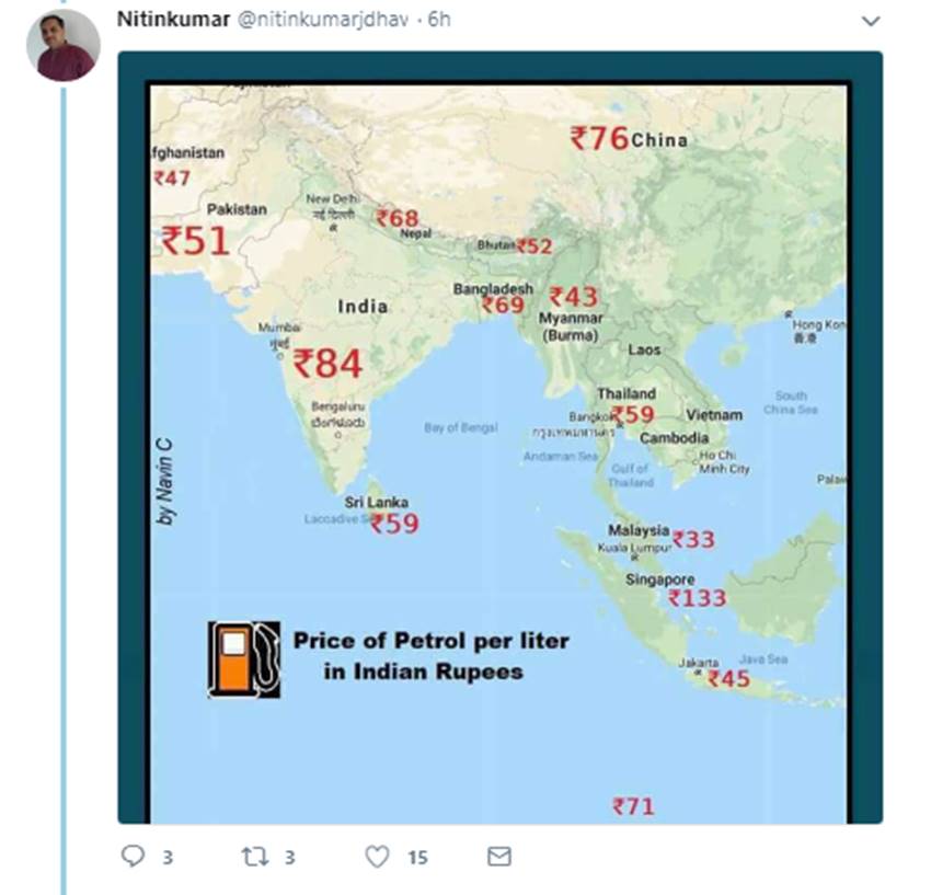लोगों ने इसी पर उन्हें जमकर ट्रोल किया। कहा कि देश में पेट्रोल के सस्ते होने के आसार कम ही लगते हैं। यह शायद तभी सस्ता होगा, जब सऊदी अरब में कमल खिलेगा। एक अन्य यूजर ने कहा कि कांग्रेस के काल में अंतर्राष्ट्रीय बाजार में तेल की कीमतें क्या थीं और अब क्या हैं, ये भी बता दीजिए। आप अपने मोदी से पूछिए कि वह वस्तु एवं सेवा कर (जीएसटी) की बड़ी-बड़ी बातें तो करते हैं, मगर पेट्रोल-डीजल और रसोई गैस को इसके दायरे में क्यों नहीं लाते?