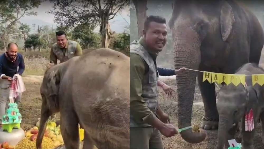 वायरल वीडियो में देखा जा सकता है कि प्रियंशी के लिए खास तौर पर एक नीले रंग का केक मंगवाया गया है, जिसे चारों ओर से फलों और अनाज से घेरा गया है। जन्मदिन के इस ‘हाथी स्पेशल’ मेन्यू में केले, सेब, अंगूर, सब्जियां और अन्य पौष्टिक आहार शामिल हैं, जिन्हें खास तौर पर नन्ही हथिनी के लिए तैयार किया गया।