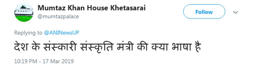 टि्वटर यूजर्स में महेश शर्मा के बयान को लेकर खासा गुस्सा नजर आया। गोपाल विजयवर्गीय नाम के यूजर ने राहुल और प्रियंका के लिए ऐसे शब्दों का चयन करने का शर्मनाक करार दिया। वहीं, एक यूजर ने महेश शर्मा को ‘कुसंस्कारी चौकीदार’ करार दिया। दरअसल, पीएम नरेंद्र मोदी ने अपने टि्वटर हैंडल में चौकीदार शब्द जोड़ा था, जिसके बाद महेश शर्मा समेत कई केंद्रीय मंत्रियों ने भी ऐसा ही किया था। कुछ यूजर्स ने फनी मीम्स के जरिए भी महेश शर्मा को निशाने पर लिया। वहीं, मुमताज खान नाम के टि्वटर यूजर्स ने पूछा कि क्या देश के संस्कृति मंत्री की यही भाषा है?
