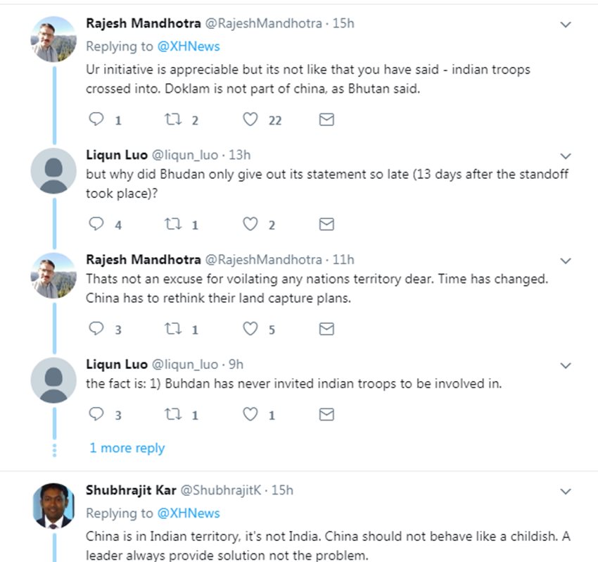 एंकर 18 को जून 2017 को भारतीय जवानों के सिक्किम सेक्टर पार कर चीनी क्षेत्र में दाखिल होने की बात कहता है। इस वीडियो को भी ट्विटर पर खूब ट्रोल किया जा रहा है। बता दें कुछ दिन पहले ही चाइना जिनहुआ न्यूज ने “Seven Sins” शीर्षक के एक वीडियो में भारत का मजाक बनाने और गलत आरोप लगाने की कोशिश की थी। Seven Sins वीडियो में एक महिला एंकर ने डोकलाम मुद्दे को लेकर भारत पर कई गलत आरोप लगाए है। इसके जवाब में हिंदुस्तान टाइम्स ने कॉमेडियन वासु प्रिम्लानी के साथ मिलकर एक वीडियो बनाया था जिसे सोशल मीडिया पर खूब वाहवाही मिली थी। इसमें वासु ने चीन द्वारा लगाए गए झूठे आरोपों का भंडाफोड़ किया था। बहरहाल आप देखें चीनी मीडिया का यह नया वीडियो।