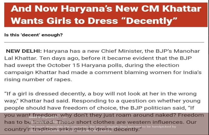 खट्टर ने एक कार्यक्रम के दौरान कहा है कि, ‘हमारे मंत्री ओपी धनखड़ कहते थे कि वह बिहार से ‘बहू’ लाएंगे। आजकल लोग कह रहे हैं कि कश्मीर का रास्ता साफ हो गया है। अब हम कश्मीर से लड़कियां लाएंगे।’ इस बयान पर बवाल खड़ा होने के बाद सीएम ने सफाई दी है और राहुल गांधी से कहा है कम से कम उन्हें तो इस तरह की भ्रामक खबरों पर प्रतिक्रिया नहीं देनी चाहिए थी। आपके लिए एक वीडियो शेयर कर रहा हूं। देख लीजिए मैंने क्या कहा था और किस संदर्भ में कहा था।