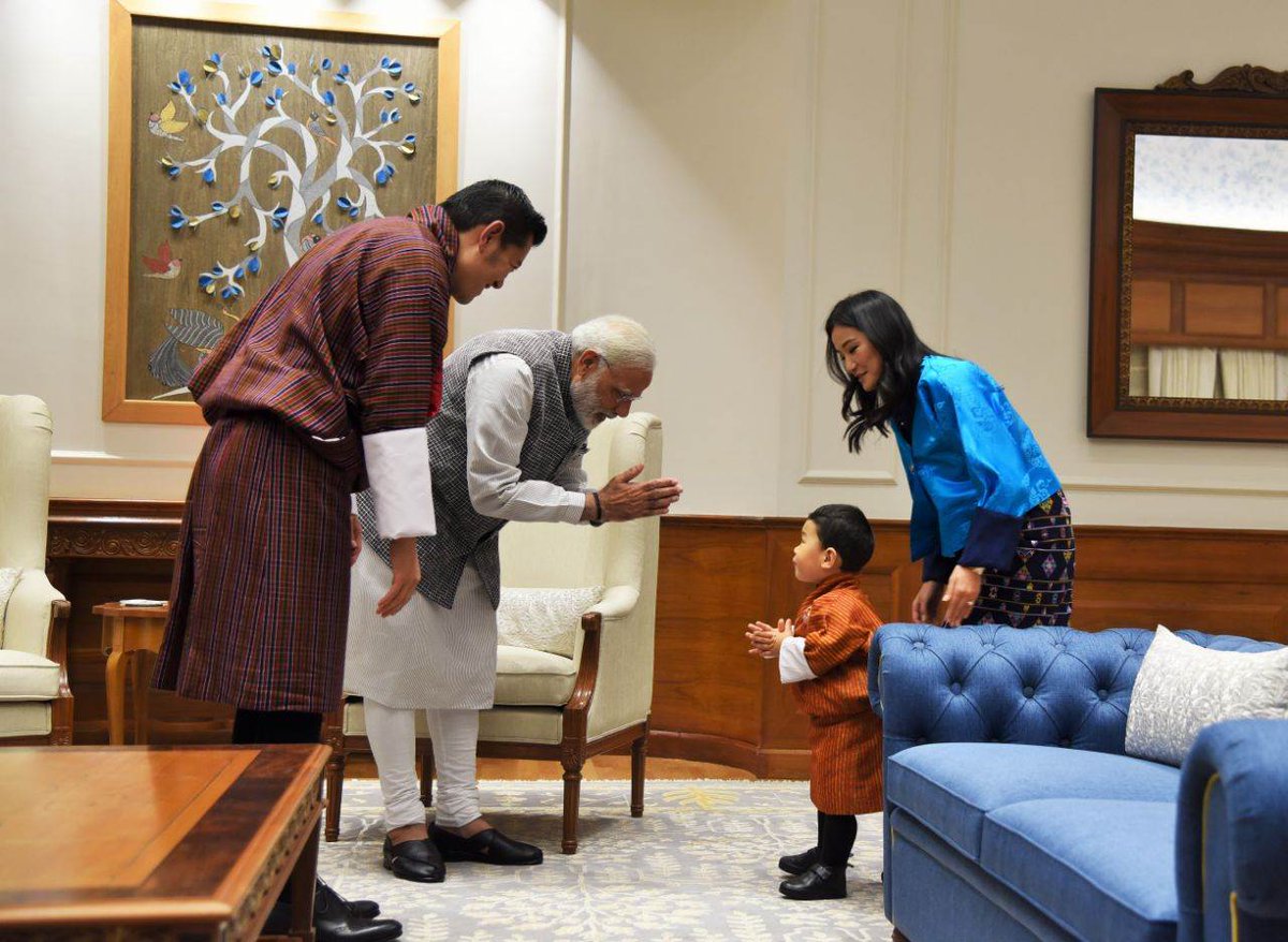 भूटान के राजा जिग्मे खेसर नामग्येल वांगचुक इस वक्त चार दिवसीय भारत दौरे पर हैं। इस दौरे में उनकी पत्नी पेमा वांगचुक और बेटा भी उनके साथ है। मंगलवार को भारत पहुंचे इस शाही जोड़े का स्वागत विदेश मंत्री सुषमा स्वराज ने किया। अपने भारत दौरे पर भूटान के किंग राष्ट्रपति रामनाथ कोविंद और प्रधानमंत्री नरेंद्र मोदी से भी मिले। पीएम मोदी ने प्रधानमंत्री कार्यालय में भूटान नरेश से मुलाकात की। इस मुलाकात में भूटान किंग के साथ उनके बेटे और पत्नी भी थे। सोशल मीडिया पर इस मुलाकात की तस्वीरें जमकर वायरल हुईं। इन तस्वीरों में पीएम मोदी जिग्मे खेसर के बेटे के साथ बातचीत करते भी दिख रहे हैं। इन्हीं तस्वीरों में से एक तस्वीर ऐसी भी थी जिसमें पीएम मोदी जिग्मे खेसर के बेटे को झुककर नमस्ते करते दिख रहे हैं। इसी तस्वीर को लेकर कांग्रेस के पूर्व सांसद व मुंबई कांग्रेस के अध्यक्ष संजय निरुपम ने प्रधानमंत्री नरेंद्र मोदी पर निशाना साधा।