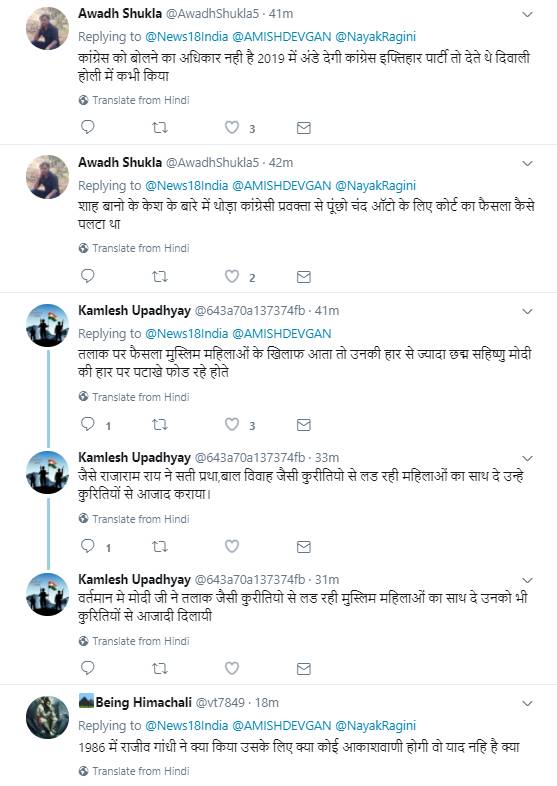 इस बारे में एक ट्वीट पर रागिनी नायक को लोगों ने खूब खरी-खोटी सुनाई। रागिनी नायक को कोसते हुए कुछ यूजर्स ने लिखा कि जरा कांग्रेस की इन प्रवक्ता से पूछा जाना चाहिए कि चंद वोटों के लिए उनकी सरकार ने क्यों कोर्ट के फैसले को पलट दिया था। वहीं कुछ अन्य यूजर्स ने लिखा कांग्रेस को तो बोलने का अधिकार ही नहीं है।