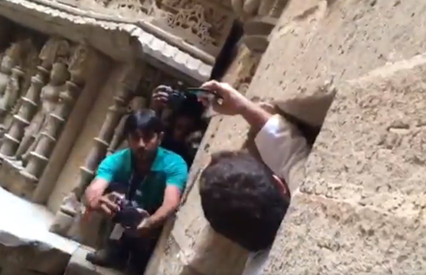 Rahul Gandhi taking Selfie at Rani ki Vav well in Patan world heritage site. @OfficeOfRG @dave_janak @News18India @awasthis pic.twitter.com/V2Sq28FLBB