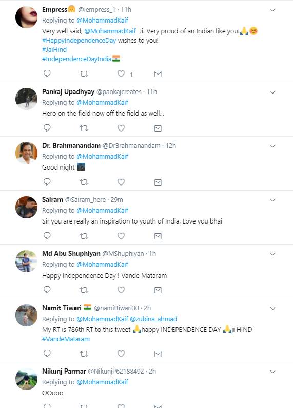 — Mohammad Kaif (@MohammadKaif) August 15, 2017