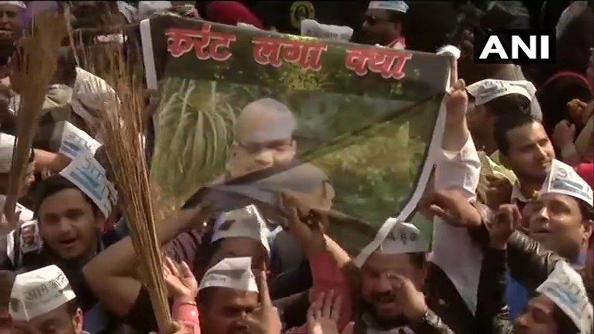 AAP हेडक्वार्टर पर इस जीत के जश्न से एक पोस्टर ने लोगों का ध्यान अपनी तरफ खींचा। इस पोस्टर के जरिए आप कार्यकर्ताओं ने अमिता शाह को ट्रोल किया। हुआ ये कि पोस्टर पर अमित शाह की तस्वीर के साथ लिखा हुआ था- करंट लगा क्या?