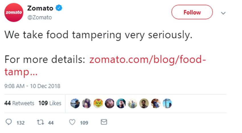 इधर अब इस पूरे मामले पर जोमैटो ने कहा है कि वो जल्दी ही खाने की पैकिंग की व्यवस्था को और भी दुरुस्त करने पर काम करेगी ताकि उसके साथ छेड़छाड़ नहीं किया जा सका।