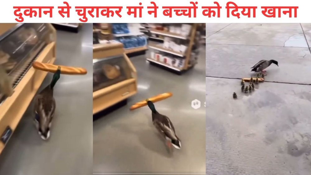 सोशल मीडिया पर जानवर-पक्षी और पशुओं के कई वीडियो वायरल होते रहते हैं, इन वीडियो को लोग काफी पसंद भी करते हैं। ऐसा की एक बेहद भावुक करने वाला वीडियो सामने आया है। एक बत्तख मां एक बेकरी की शॉप में घुस जाती है और वहां से खाने की जीच अपनी चोंच में लेकर भागने लगती है।