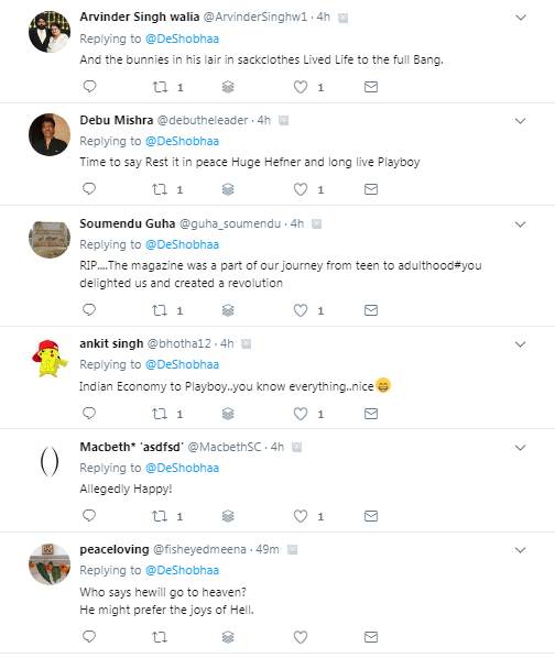 दरअसल हुआ ये कि शोभा डे ने ह्यू हेफनर के निधन के बाद ट्वीट करते हुए लिखा- दुनिया के सबसे बड़े प्लेबॉय का निधन हो गया। जन्नत की हूरें उनके स्वागत के लिए खुश होंगी।